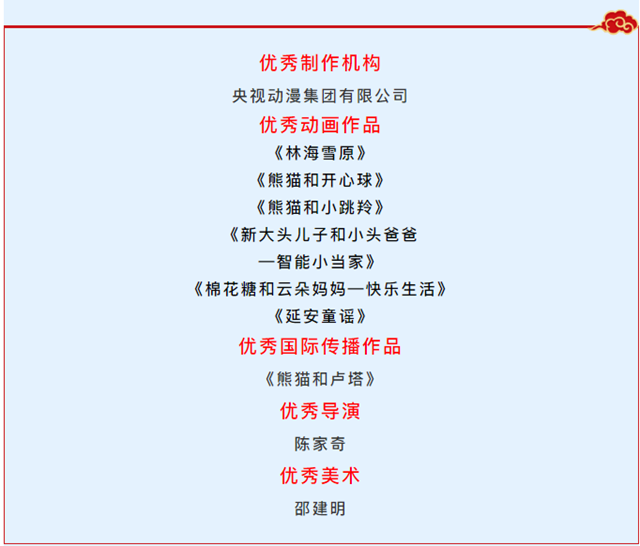 央视动漫获机构、作品、人才等方面共10项荣誉