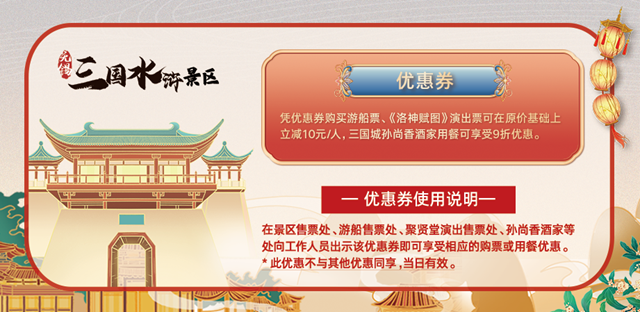 购买渠道 :官方微信公众号(无锡影视基地)、官方抖音号(无锡三国城水浒城)、飞猪淘宝店铺(三国水浒景区旗舰店)、美团网、同程网、携程网、驴妈妈、飞猪网