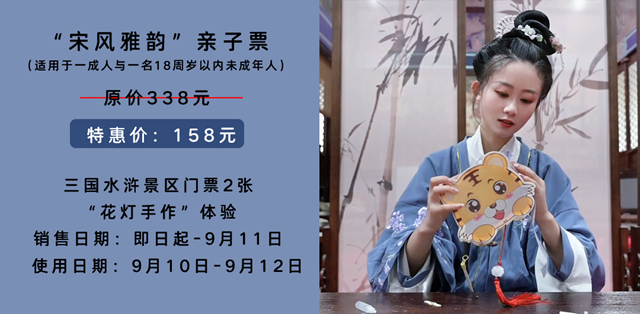购买须知 :请至少提前一天订购,购票成功后需至三国/水浒景区售票处取票,凭票进入景区参与“花灯手作”体验(地点:水浒城宋皇宫睿思殿)。