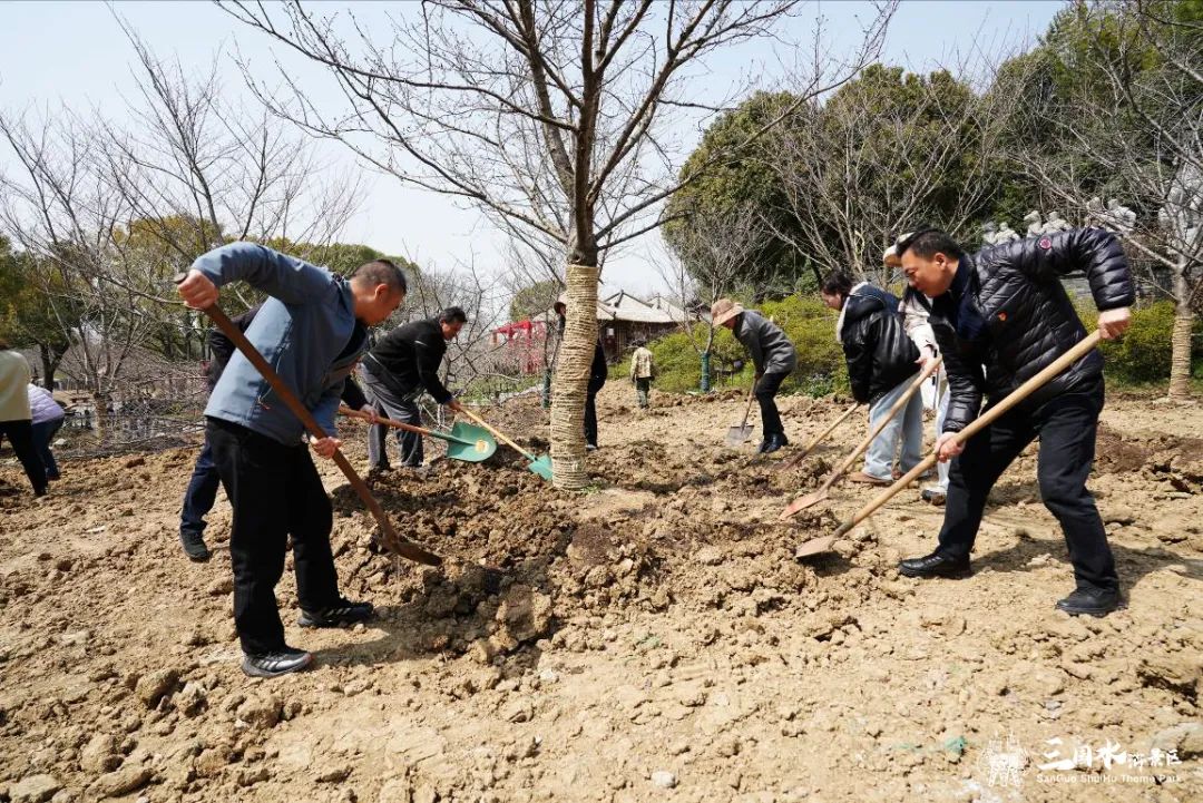 阳春三月,万木生发,正是植树绿化好时节。为深入践行习近平生态文明思想,积极带领党员干部参加爱绿植绿护绿兴绿行动,自觉做绿水青山就是金山银山理念的积极传播者和模范践行者,3月19日下午,无锡影视基地党工团联合开展“三国水浒樱你而美”植树活动。