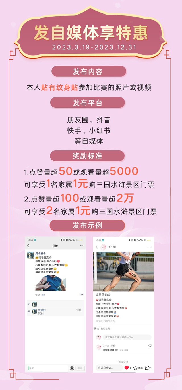 参赛人员发自媒体还可替同行家属获得1元购三国水浒景区门票(原价175元)的机会!