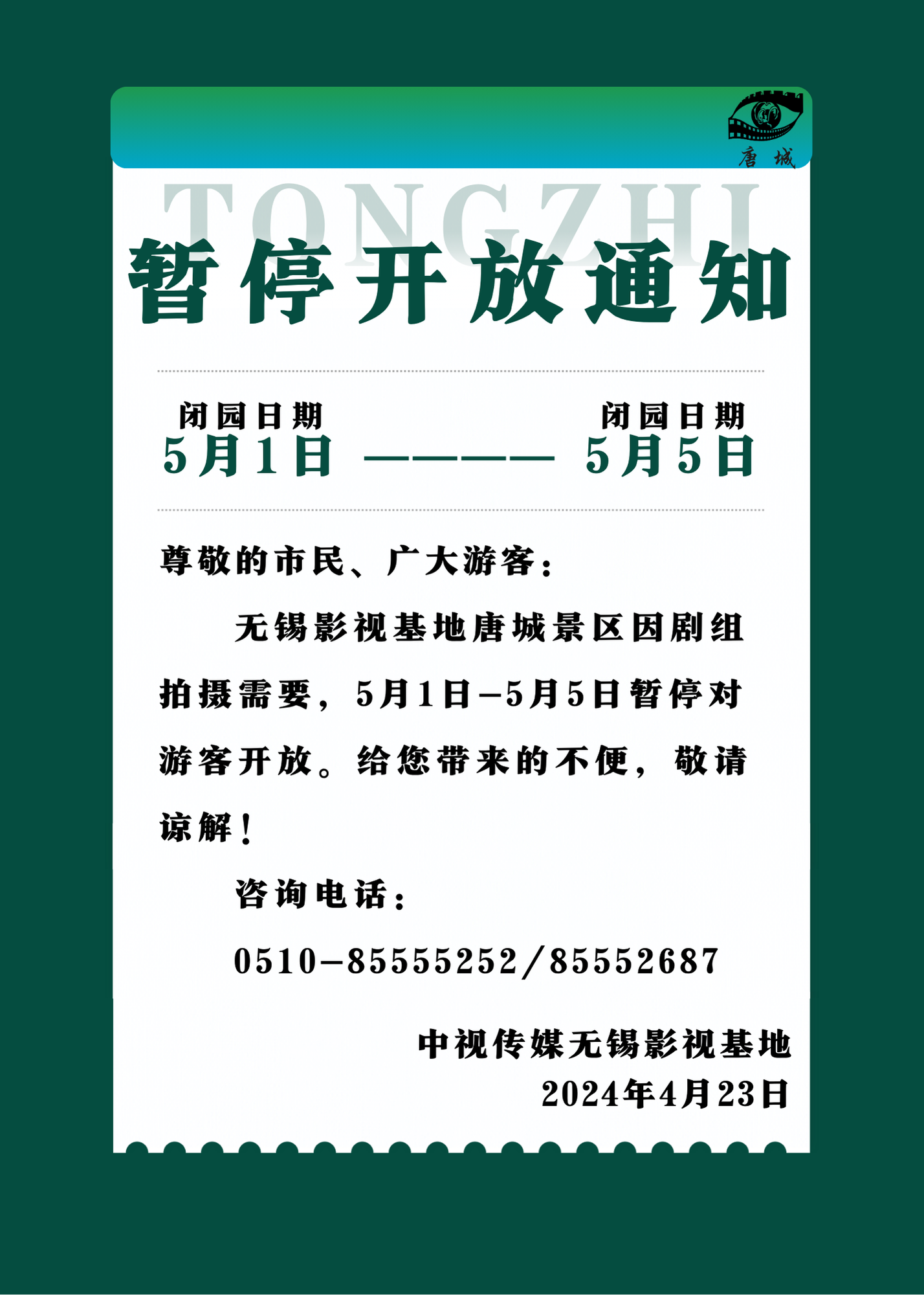 关于2024年五一期间唐城景区暂停对外开放的通知