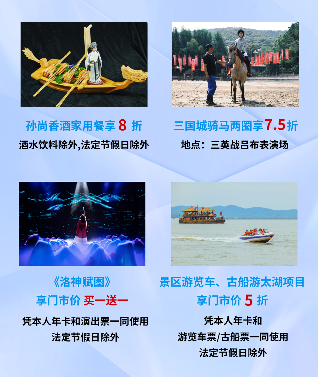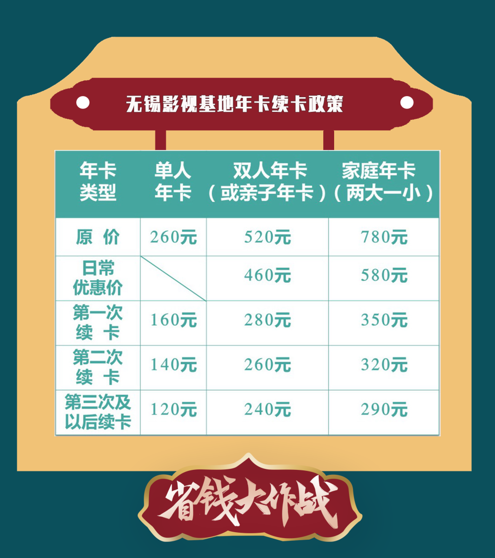 此前所有购买无锡影视基地年卡且年卡未到期的游客,可凭未到期年卡至三国水浒景区售票处办理优惠续卡服务,年卡有效期在原基础上顺延一年。