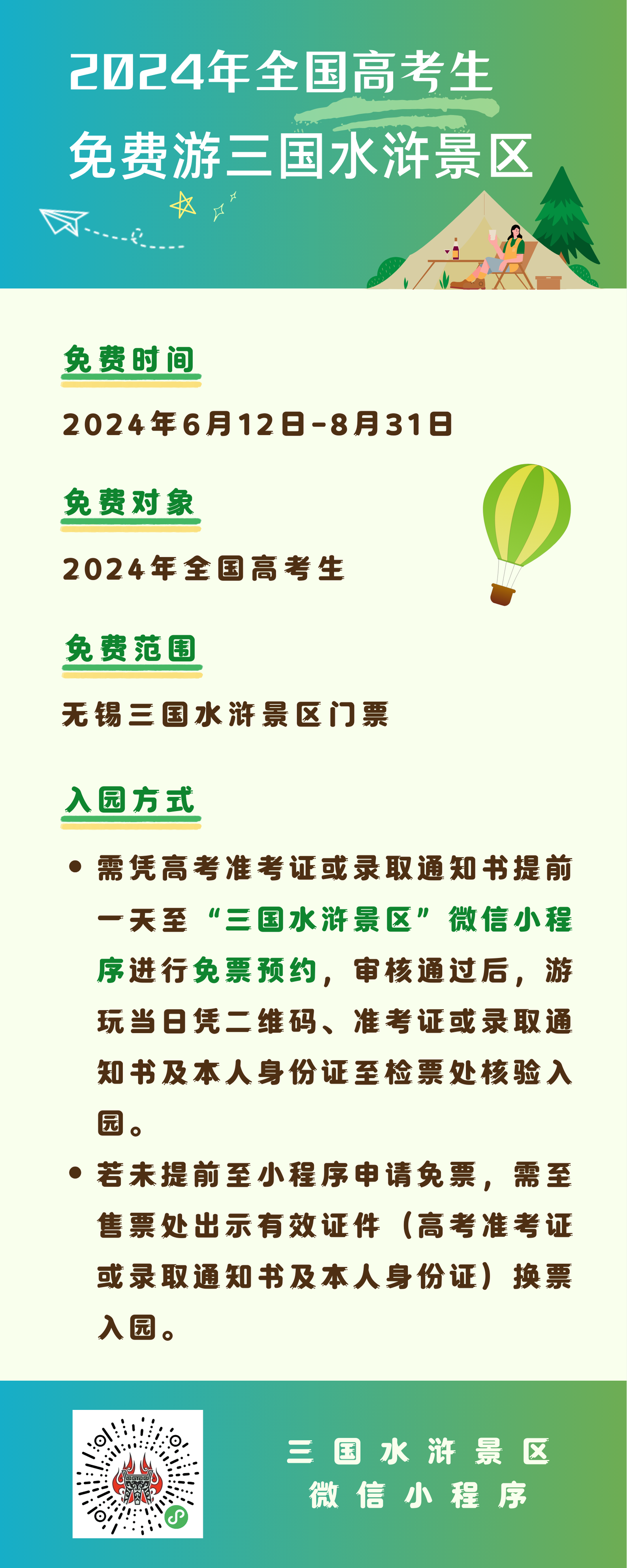 @全国高考生,三国水浒景区喊你免费畅玩