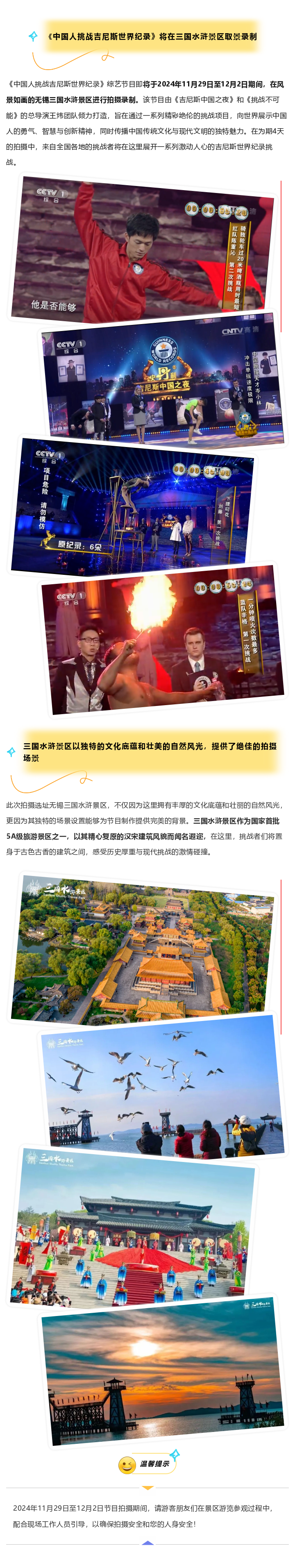 点赞!《中国人挑战吉尼斯世界纪录》将在三国水浒景区取景录制