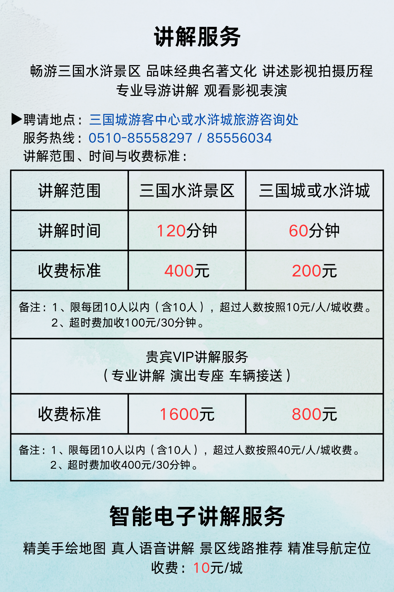 景区提供英语、日语、粤语导游服务,如需聘请,请至少提前一天致电