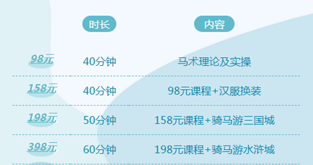 通过互动式的体验课程,让大家对骑术产生兴趣,增加运动趣味性,从而享受马术运动带来的快乐。