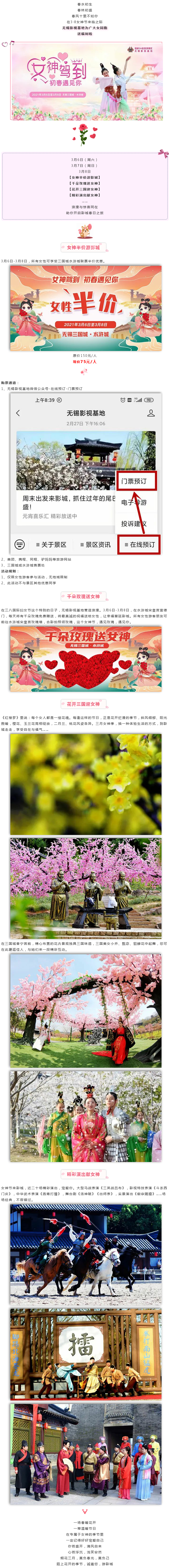 3月6日-8日女神福利,三国水浒景区门票半价,还有千朵玫瑰赠送,好浪漫!