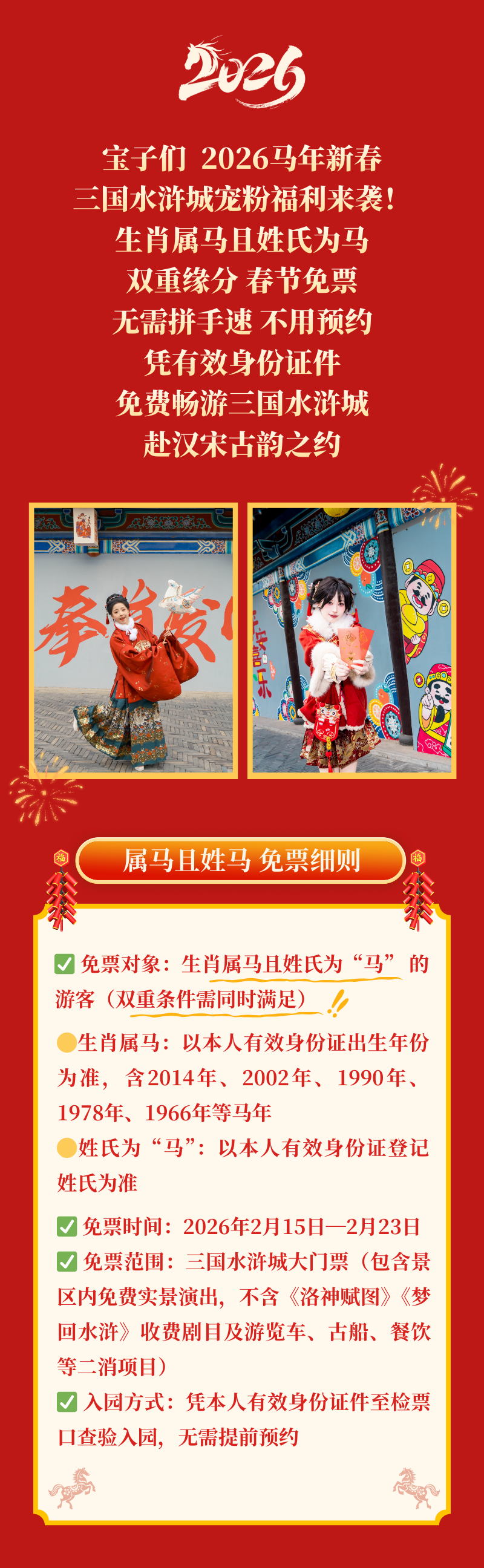 @属马且姓马的朋友们,2026春节免票游三国水浒城!